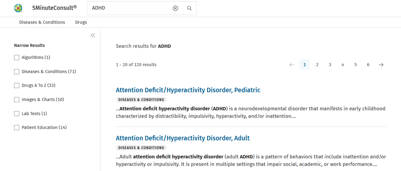 Acesse 5MinuteConsult e potencialize suas decisões clínicas! Explore mais de 2.000 doenças e condições comuns na prática clínica, com monografias de medicamentos completas da Facts & Comparisons – incluindo materiais educativos para pacientes e alertas de interações medicamentosas. Em uma busca rápida, tenha informações detalhadas sobre prescrição e segurança para mais de 1.900 medicamentos, tudo ao seu alcance para um cuidado preciso e atualizado.